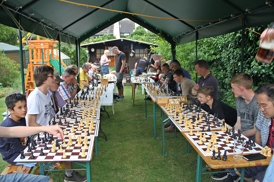 aber auch wieder einiges geboten. Preise, Essen, Trinken. Gespielt wird Schnellschach.