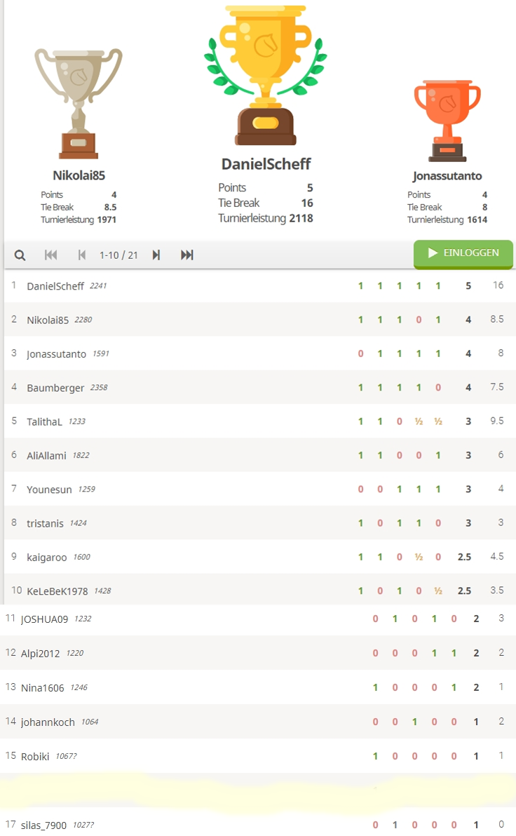 selber zu, er trat in der Schlussrunde mit nur 1 aus 6 den schweren Gang